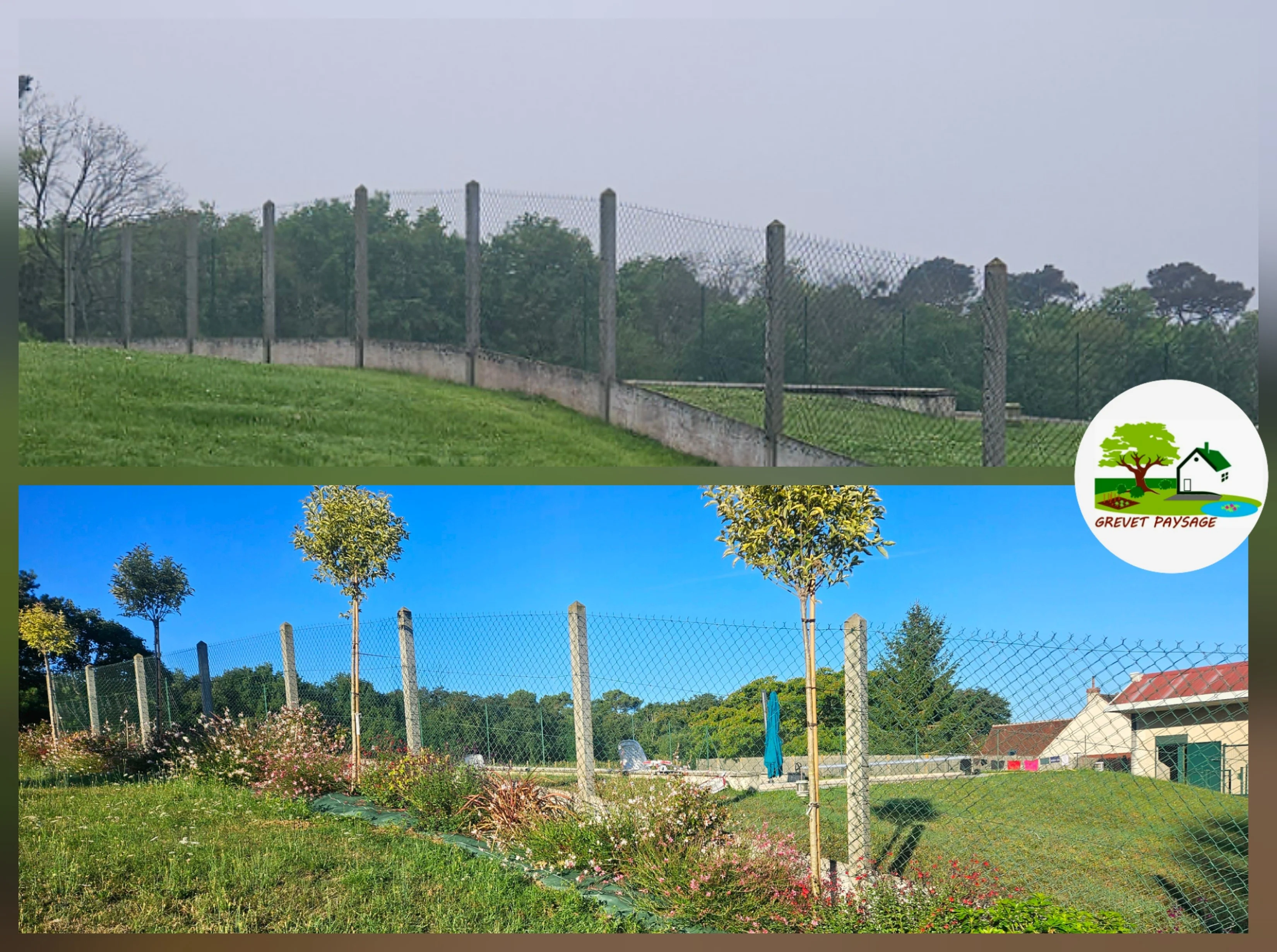 Bordure pavé, toile tissé, paillage, plantation, engazonnement